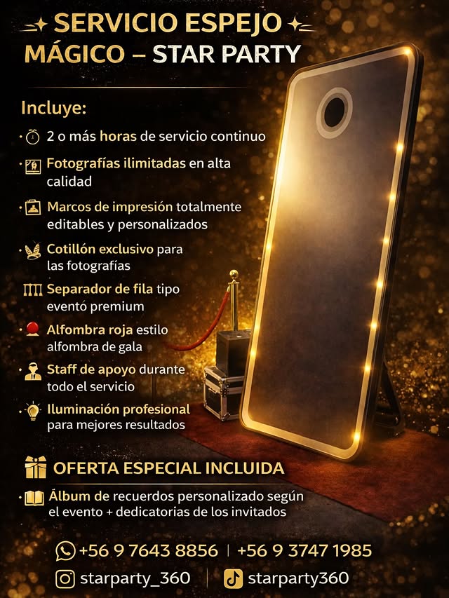 con tecnología de última generación. Espejo Mágico, Cabina 360° y Robot LED para experiencias únicas en RM y V Región.