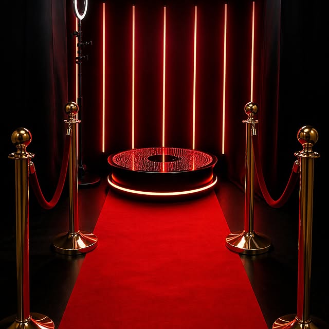 Videos 360° profesionales en cámara lenta con fondo LED, alfombra roja y sogas doradas. El show favorito de los eventos modernos — compartible al instante desde el celular.